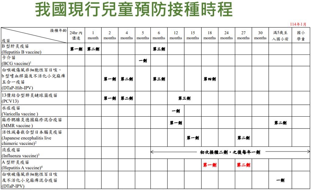 3.接種公費疫苗種類如附件(我國幼兒公費常規疫苗種類與接種時程)。