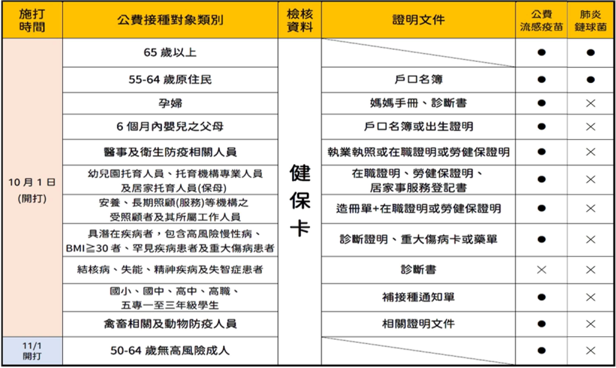 公費接種對象: