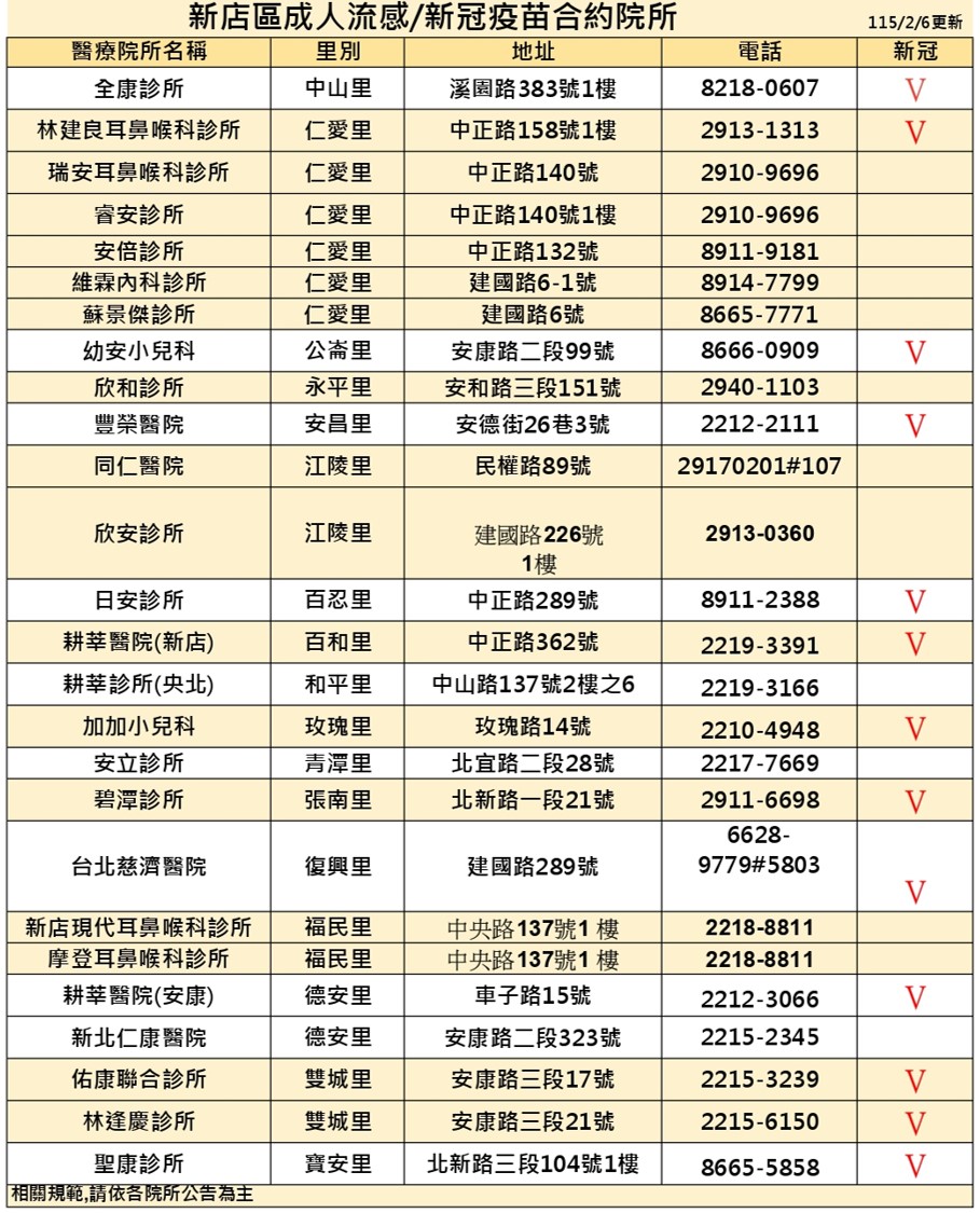 新北市流感疫苗及COVID-19疫苗接種地點資訊查詢請點我